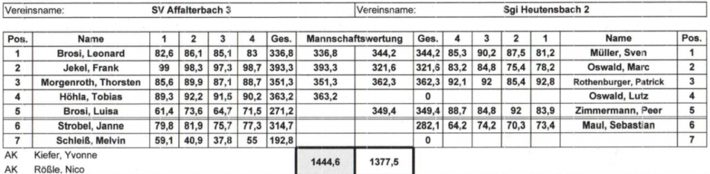 Damit liegt die Mannschaft des SV Affalterbach 3 in der Mannschaftswertung von insgesamt 9 Mannschaften nach dem ersten Wettkampf auf Platz 4.