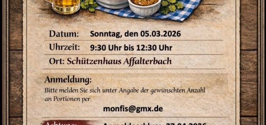 Weißwurstfrühstück im Schützenhaus (Voranmeldung!) 13. April 2026 von MainBlogger · Published 13. April 2026
